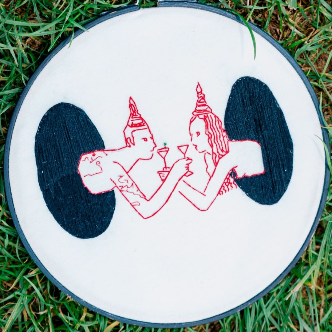- a couple sharing a drink leaning out of black holes