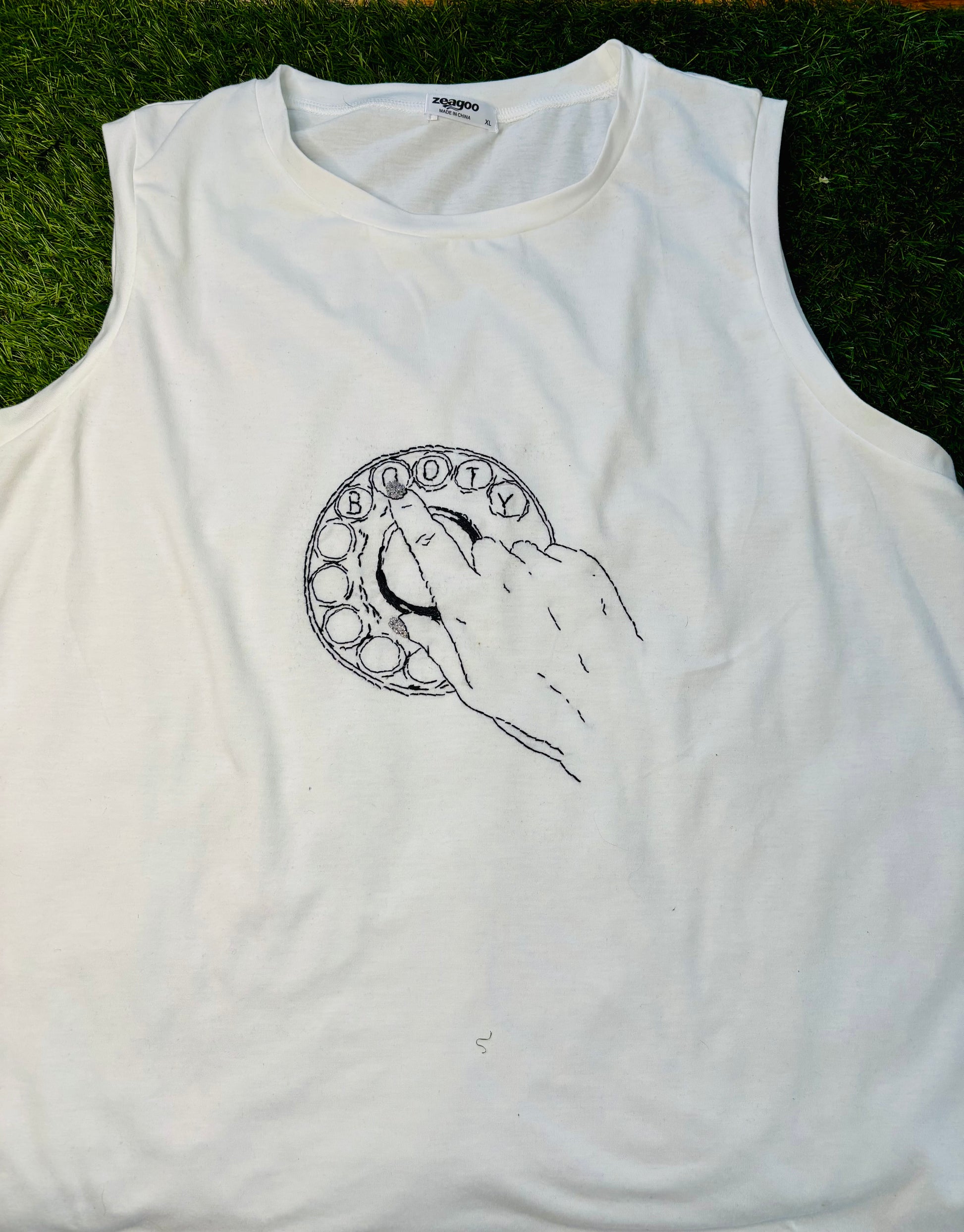 Fans of rotary phones will love the vintage vibe of this cheeky and bold booty call muscle tank. Evoking memories of tangled phone cords hidden away for secret conversations, it’s perfect for setting up your after-hours rendezvous!